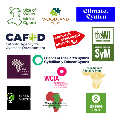 The GCJG core members are currently: Oxfam Cymru, Christian Aid, CAFOD, Friends of the Earth Cymru, Climate Cymru, WCIA, the National Federation of Women’s Institutes – Wales, Size of Wales, Sub-Sahara Advisory Panel (SSAP), the Woodland Trust, Hub Cymru Africa, Green Voices and Women4Resources.